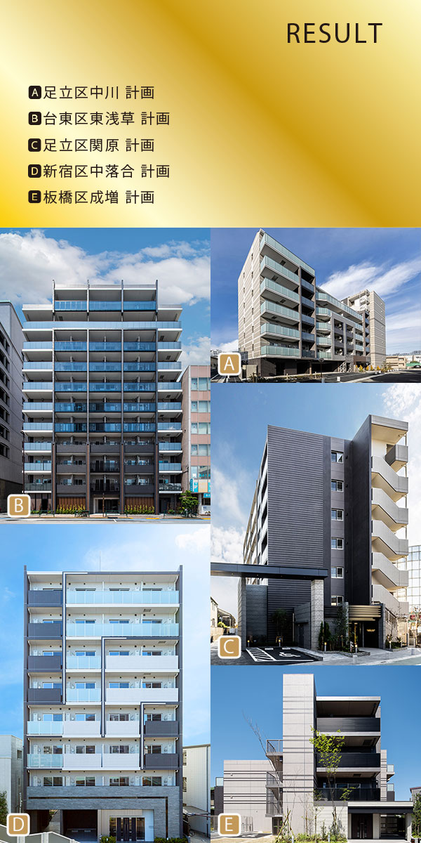分譲マンション・アパートの1棟物件から区分所有住戸まで、ニーズの高いエリア、居住価値のある物件の仕入れ・販売を展開。